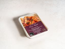 Penne GF, Primavera sauce [Capsicum, Mushrooms, Red onion, Canola oil, White wine, Garlic, Tomato puree, Canola (Soy), Water, Onion, Carrots, Celery, Salt, Sugar, Basil, Garlic raw, Bay leaves], Napoli [Tomato puree, Canola oil, Water, Onion, Carrots, Celery, Salt, Sugar, Basil, Garlic, Bay leaves]