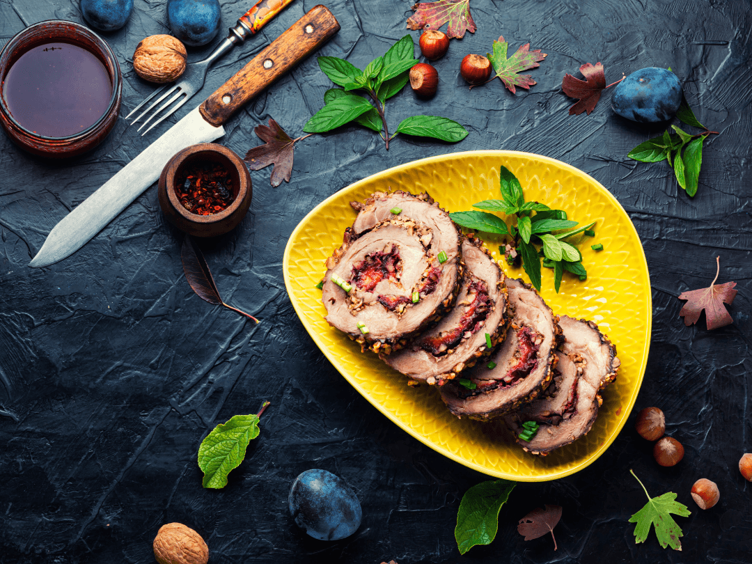 Indulge in the exquisite flavours of our Rolled Lamb Shoulder, succulent lamb, rolled and roasted to perfection. Within, a luscious stuffing of sweet plum and fragrant sage unfolds, creating a symphony of savory and fruity notes. This dish is a celebration of tender lamb, enhanced by the rich complexity of the plum and sage stuffing, offering delight in every slice. 500g serves 5-6 adults 1kg serves 10-12 adults