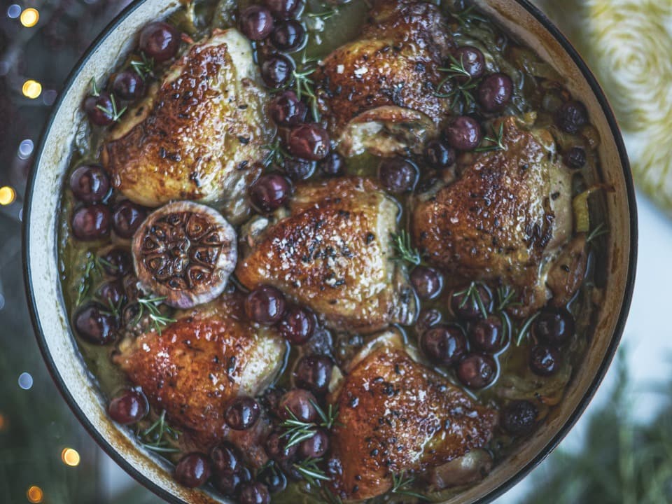 Crispy skin and succulent meat, roasted to golden perfection. Nestled beside, a bed of sweet red grapes imparts a burst of natural sweetness, balancing the savoury richness of the chicken. This dish is a symphony of textures and flavours, where the juicy tenderness of the chicken harmonizes with the delectable sweetness of the roasted grapes. 1 Maryland piece per adult serve.