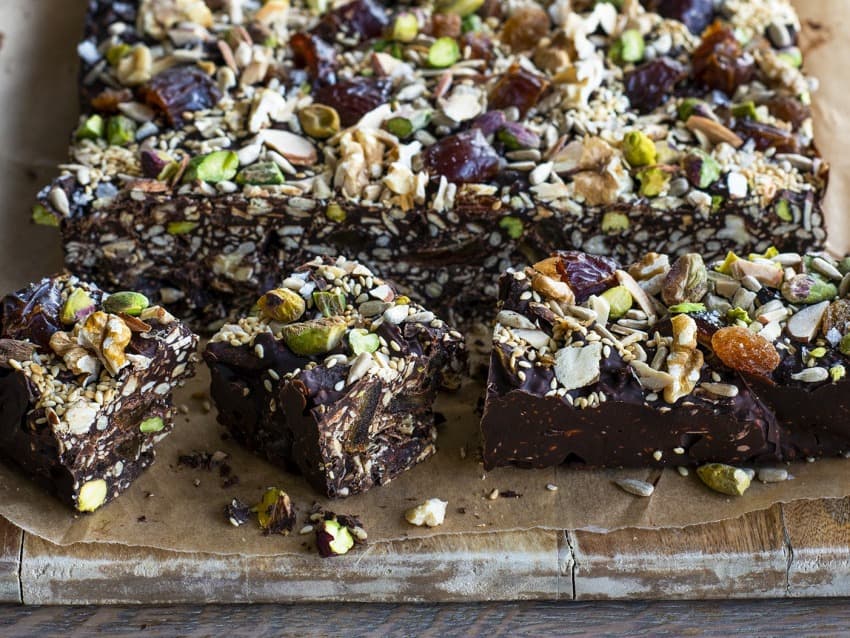 This dark chocolate slice is packed with all the good stuff. Perfect for a afternoon pick me up.