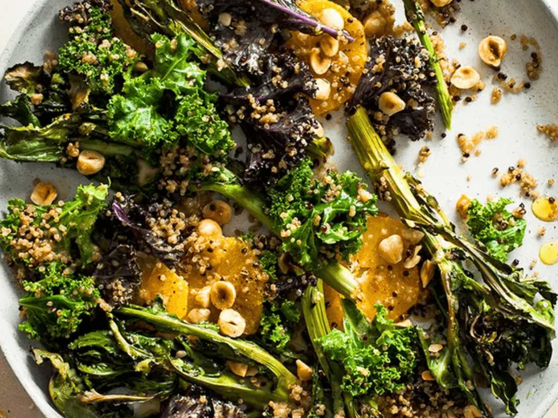 This simple salad has lots of nuttiness and zing! Plus it’s filling enough with the roasted broccoli quinoa and carrots for lunch or dinner.