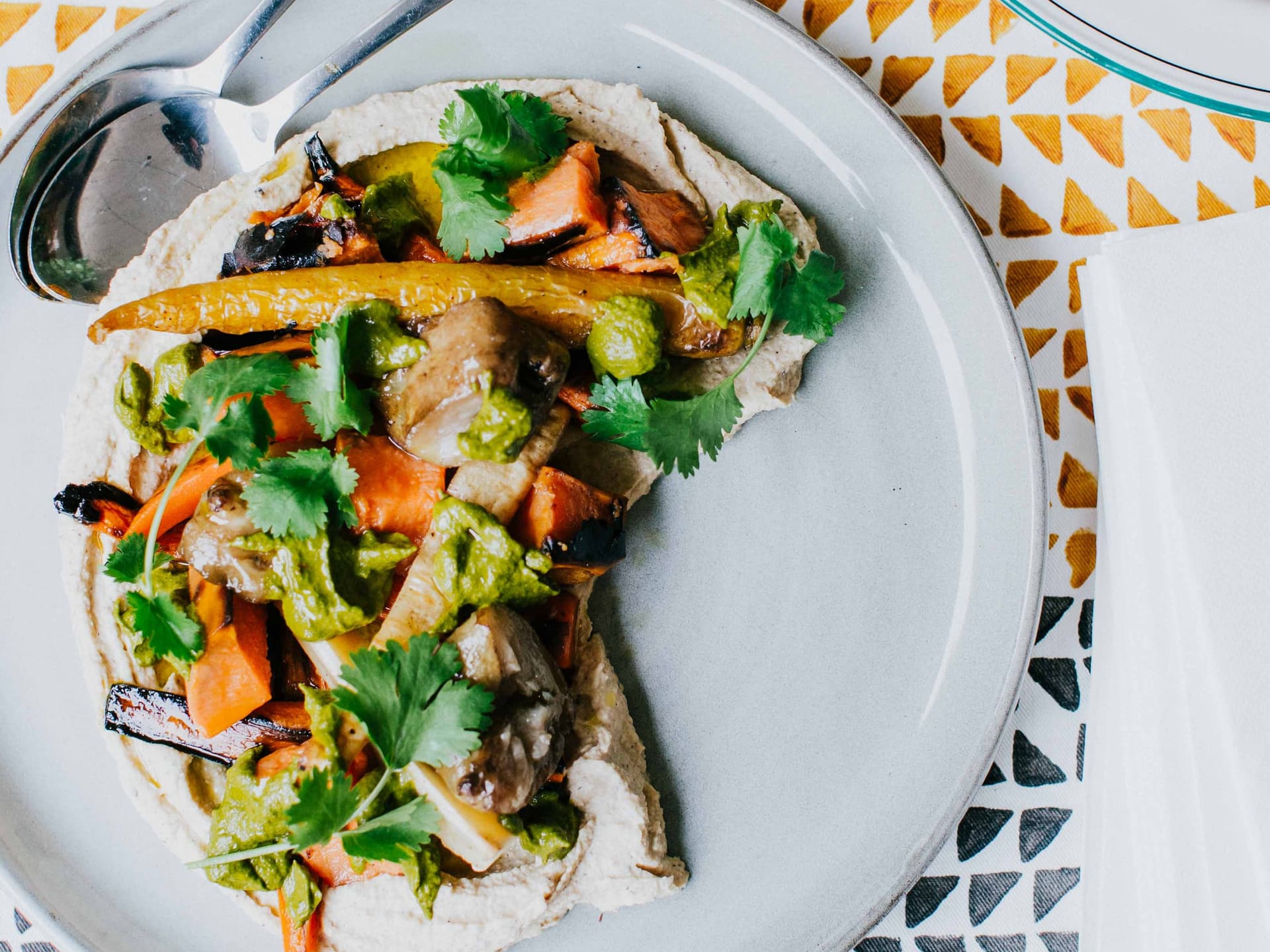 A taste of Morocco. Spiced vegetables are given a little kick by the zingy coriander zhoug. Add some of our Moroccan spiced chicken and you're all set!