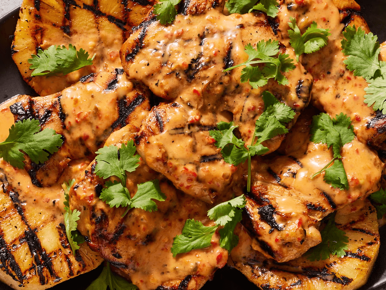 With chilli, lime, coconut milk, pineapple, garlic and ginger, this saucy Grilled Chicken is a must. The pineapple juice helps tenderize the chicken, along with the coconut milk, while the chilli gives a little kick and the freshness of the lime finishes it off. Add to your favourite rice as a complete meal.