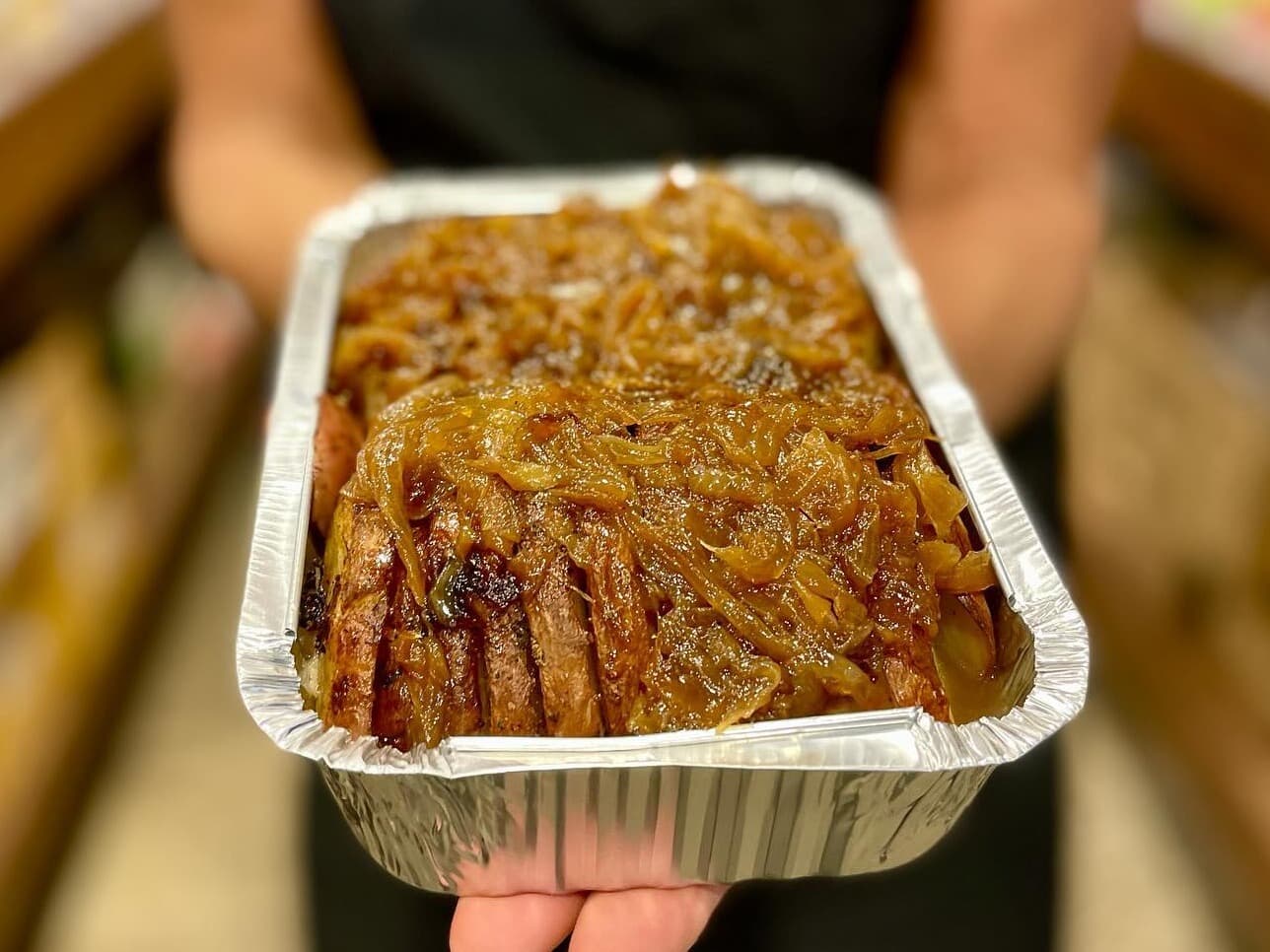 Hot out of the oven at 3pm every day and always a sell out. Our free range chooks come from the Sunshine Coast and are roasted to perfection, served with a side of daily roast vegetables, ample for a family of 4.