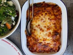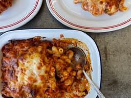 Heat through @180C until golden on top and hot in the middle when tested with a small knife, about 30 minutes.