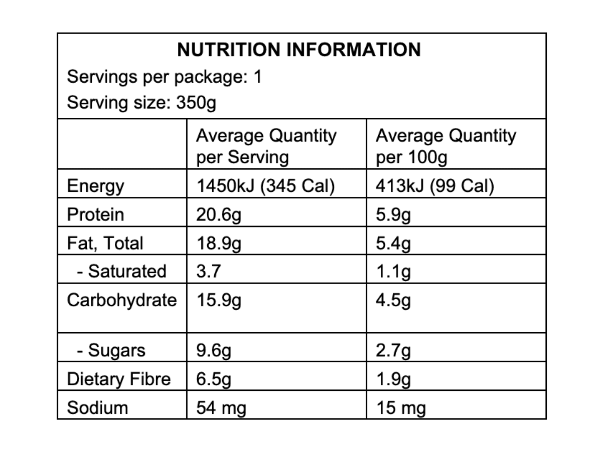 Vegetable stock, Water, Pasteurised eggs, Parmesan cheese (Milk), Skim milk powder, Salt, Pepper, Chives, Caramelised onion [Onion, Vinegar, Canola oil, Sugar, Food acid (330)]