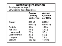 Egg, Water, Salt, Sunflower oil, Fetta cheese (Milk), Spinach, Cheese (Milk), Skim milk powder, Spices, Thickener (1442), Stabiliser