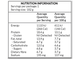 Our Choc Coconut Protein Bircher is a delicious (Gluten Free) blend of chia seeds, linseeds, almonds, brown rice flakes and cocoa choc chips soaked with Greek yoghurt and ricotta. Blended with shredded coconut, this breakfast dish is a little bowl of creamy, chocolatey indulgence. Good source of dietary fibre Good source of protein Contains less than 500mg of sodium per serve