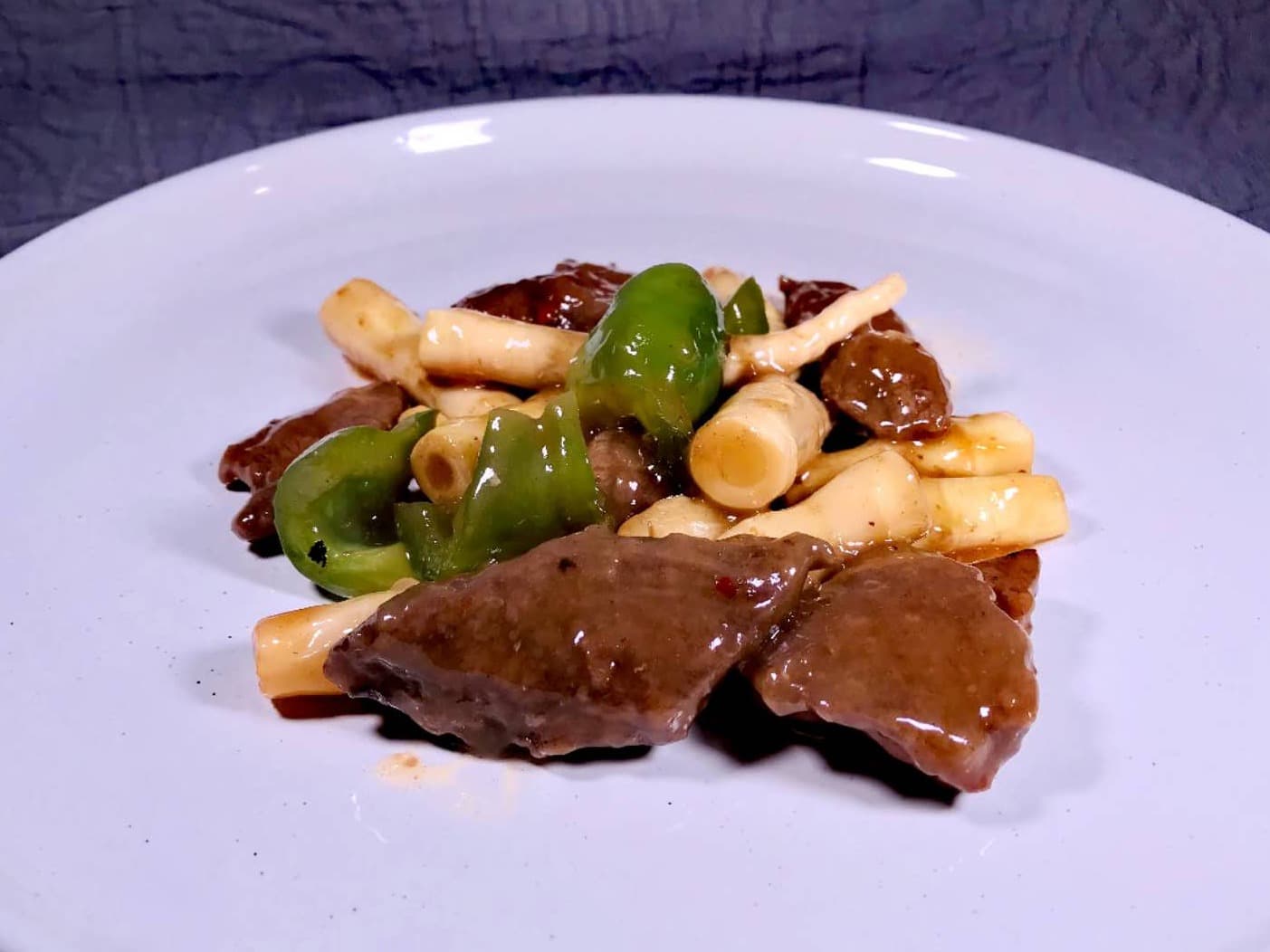 这是一道创新菜,高山笋和牛肉的完美融合,不仅味道鲜美还富有口感,更是粗纤维与蛋白质补充的不二之选。