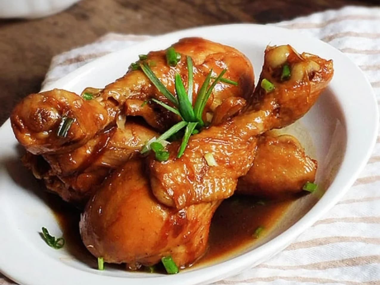 香卤鸡腿,肉质紧实但不柴,味道浓郁,带皮吃脂肪含量高但味道更加,去皮吃脂肪含量减少30克左右,更加健康,唯一需要担心的是肉脱骨掉地上