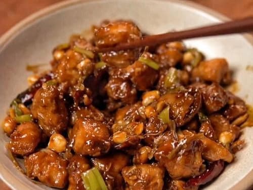 精选无骨鸡腿肉,以传统配方炒制,完美地结合了咸、甜、酸、辣的味道和鸡肉Q弹的口感。