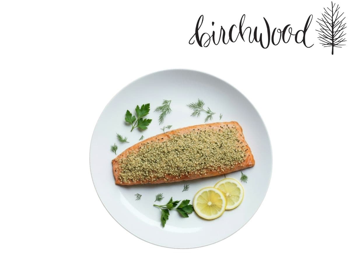 Serves 10-12 | Tea smoked, hemp seed dukkha crusted salmon side served with a side of beetroot Hummus for serving. This dish is designed to be served cold and pulled apart or flaked as serving.