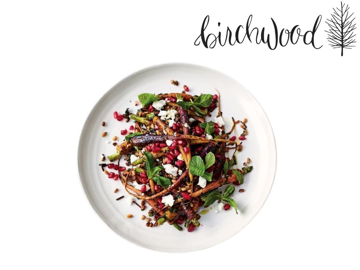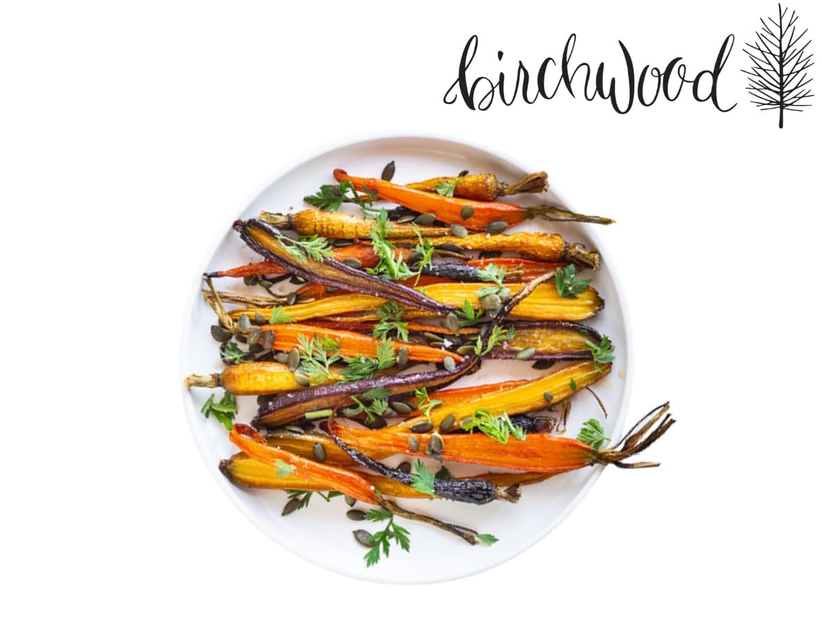 Serves 10–12 as a side | Christmas-glazed carrots marinated in garlic and herbs and pre-cooked, ready for you to place on a baking dish in the oven to reheat and crisp up. Includes toasted walnuts to sprinkle on top. 2 bunches of heirloom carrots.