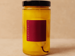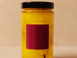 Peeled and poached whole in a spiced wine & sugar syrup. Serve with crème chantilly, warm chocolate sauce or mascarpone and crumble over some crushed biscotti or nut praline.