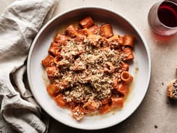 Our rich vodka & nduja pasta sauce with rigatoni, sourdough garlic bread, and a fresh broccoli and cabbage slaw. A modern Italian-inspired dinner, perfectly matched. All you need to do is cook the pasta! includes: 1 x N'duja & Vodka Pasta Sauce 1 x Rustichella Rigatoni Pasta 1 x Cabbage & Broccoli Slaw, Parmesan, Toasted Pine Nuts & Lemon Vinaigrette 1 x Sourdough Garlic Bread