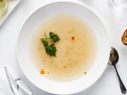 Water, Onion, Celery, Garlic, Salt, Leek, Apple cider vinegar, Chicken bones, Thyme, Bay leaves