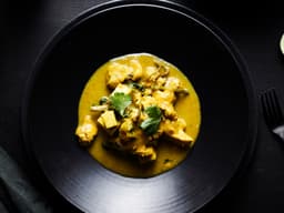 Coconut milk, Chicken thigh, Sweet potato, Cauliflower, Bok choy, Lemongrass, Ginger, Water, Mint, Kaffir lime leaves, Salt, Fish sauce, Lime juice, Turmeric, Palm sugar, green chilli, Turmeric powder, Coriander seed, Cumin (ground), Black pepper, Canola oil