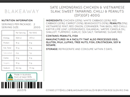 Chicken, White cabbage, Red cabbage, Carrots, Beanshoots, Red onion, Coriander, Red chilli, Kaffir lime leaves, Lemongrass, Galangal, Water, Shallot, Garlic, Sea salt, Tamarind, Sugar, Fish sauce, Red wine vinegar (Sulphites), Peanuts, Vietnamese mint, Thai basil, Turmeric, Canola oil