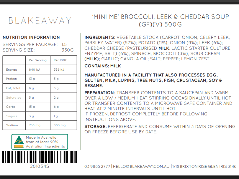 A comforting, flavourful blend of fresh broccoli and sautéed leek, finished with sharp cheddar for just the right amount of indulgence. Packed with veg and big on flavour — a little good, a little naughty, just like life.