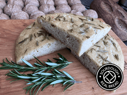 A tasty millet focaccia topped with fresh rosemary, flakes of Tasmanian sea salt, and Australian Olive oil.