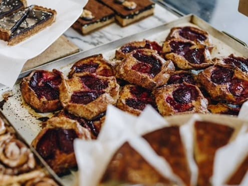 Pork and fennel sausage rolls wrapped in puff pastry and topped with poppy seeds. Served cold for reheating at home.