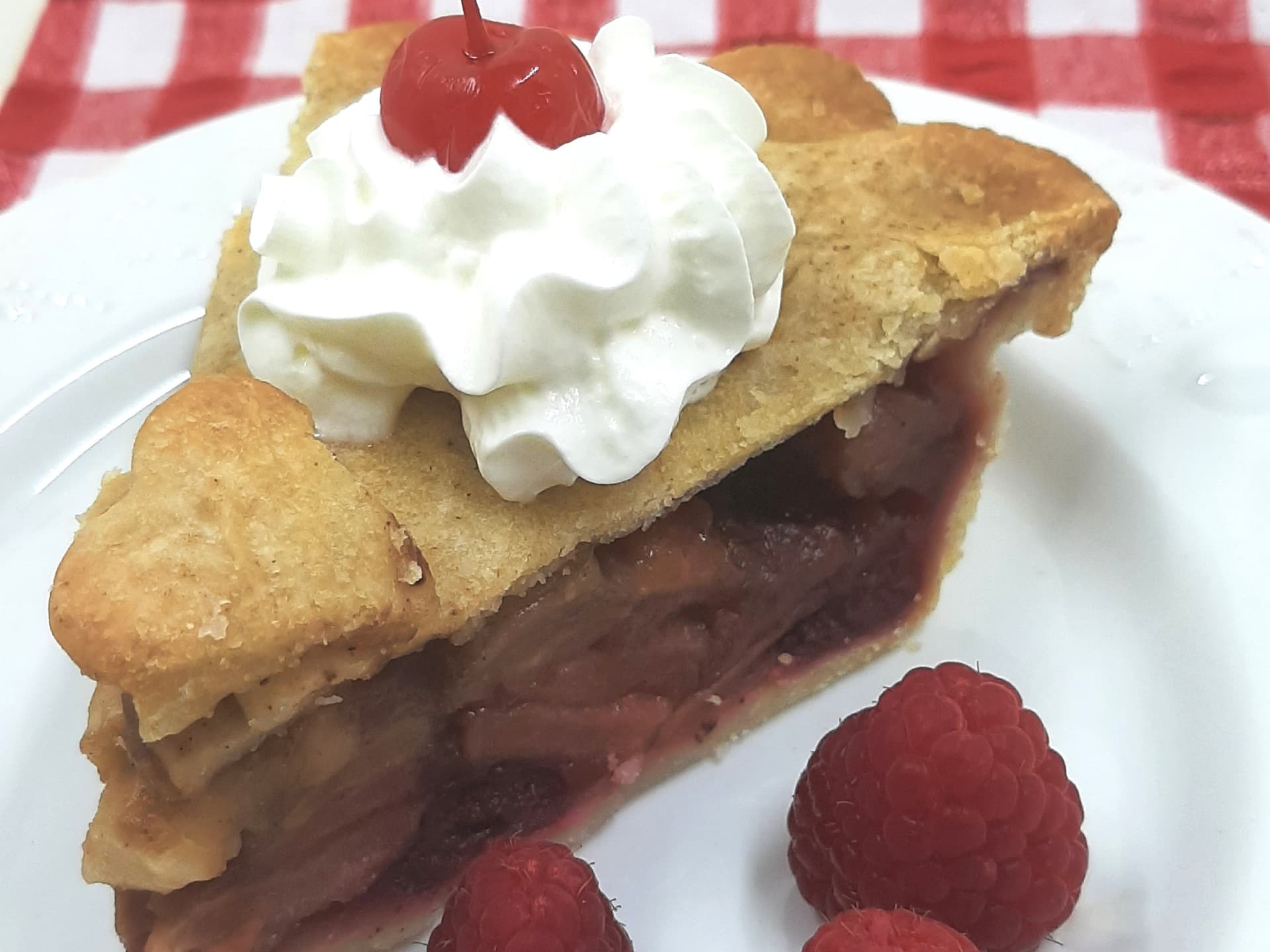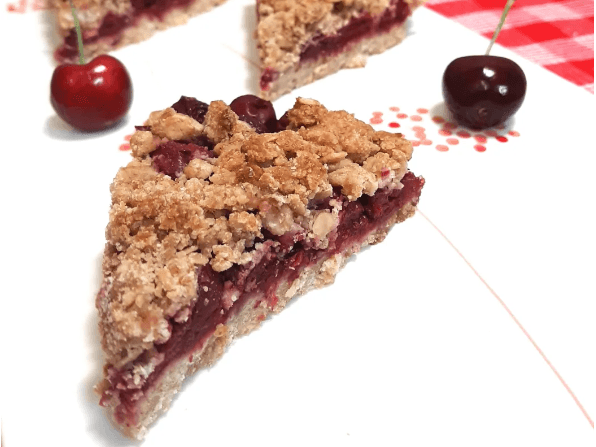 Cherries - frozen, Spelt flour (Wheat), Maple syrup, Oats, Flour (Wheat), Nuttelex, Monkfruit Classic Sweetener, Vanilla extract, Salt