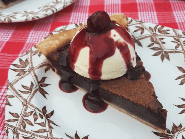 Chess pies are a part of many Southern cook's pie repertoire. For this rich chocolatey custard pie, a little slice goes a long way. Make it decadent with a dollop of cream and a swirl of cherry syrup.