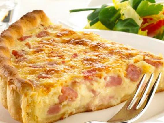 Quiche Lorraine can be served room temperature with a crisp green salad