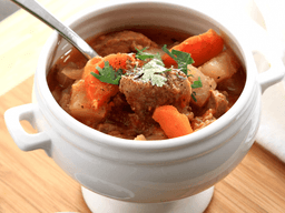 Beef Chuck Steak, Water, Red Wine, Bacon, Onion, Brown, whole, Beef Stock, Carrot, orange, whole, Potato, Mushroom, Olive oil, Plain flour (Wheat), Thyme Fresh, Tomato Paste, Garlic, Bay leaves