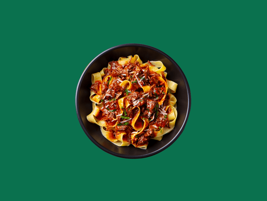 Slow-cooked pork ragu served with wide pappardelle pasta.