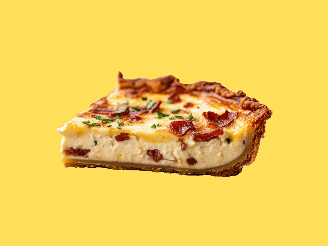 Bacon and egg slice baked until golden with layers of savoury bacon and fluffy egg in a crisp pastry base. Delicious served warm or cold.