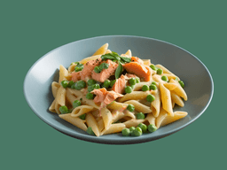 Creamy pasta with a salmon and pea sauce is a rich, comforting dish featuring tender flakes of salmon and sweet green peas in a velvety cream sauce, tossed with pasta for a deliciously satisfying meal. *Sample image only