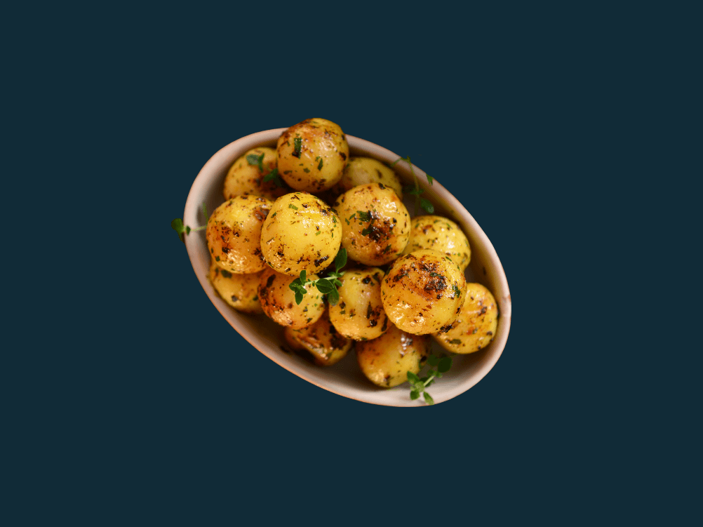 Crispy roasted chat potatoes coated in fragrant dukkah spices, delivering a warm, nutty crunch with every bite.