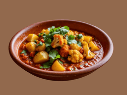 Cauliflower, Potato, Tinned tomatoes, Vegetable Stock, Red capsicum, Sweet Potato, Zucchini, Red onions, Spinach, baby, fresh, Pumpkin, Jap / butternut, Whole, Carrot, orange, whole, Sugar, Continental Parsley, Olive oil, Garlic, Chilli, Cumin, Cinnamon, Coriander, Salt, Bay leaves