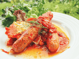 Italian pork sausage cooked with tender potato and capsicum in a savoury sauce. A hearty, flavourful dish with classic Mediterranean flair.