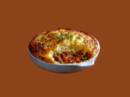 Hearty shepherd’s pie with seasoned minced lamb, vegetables, and topped with golden mashed potato.