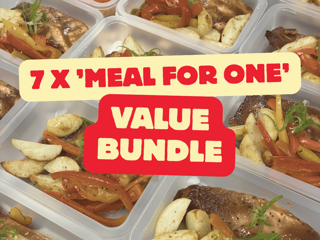 Create your perfect weekly menu with our 7x'Meal for One' Value Bundle! Choose any 7 of our 'Meals for One' range and enjoy them for just $105 — that’s a saving of $24.50. It’s the easiest (and tastiest) way to plan your week, save money, and enjoy fresh, chef‑made meals without the hassle.