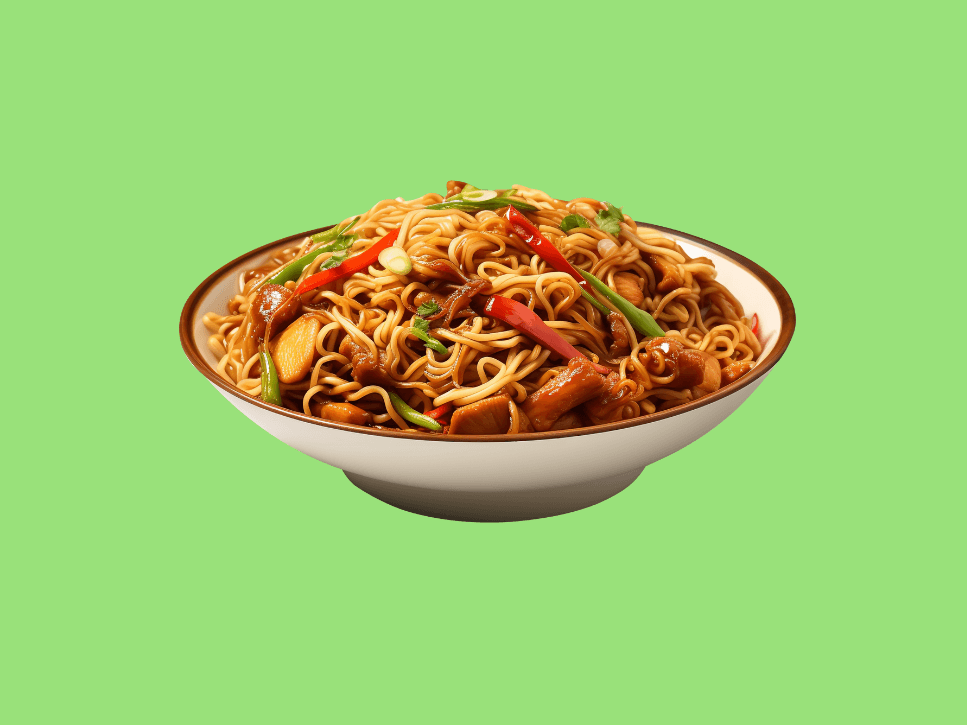 Stir-fried noodles, fresh vegetables, and savoury sauce, creating a deliciously flavourful vegetable chow mein.