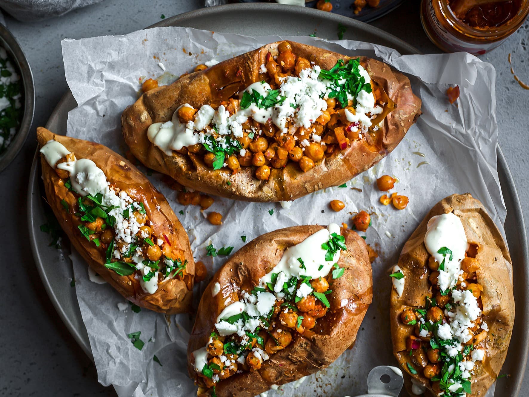 A lovely creamy sweet potato & family favourite that will go with just about anything. A really delicious alternative to straight roasted potato.