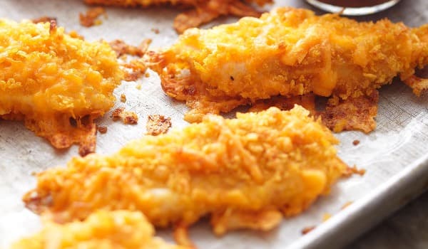 Whoopy-doooo! A cheeky little cheesy chicken tender as a fabulous substantial snack or accompany with some mash & veg for a meal for the kids.