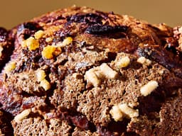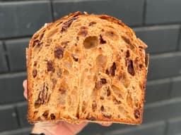 Traditional, naturally leavened Panettone made with Cuvee's dark, milk and blanc de caramel chocolates and a flutter of sultanas. The dough includes orange puree to enhance both the colour and texture. The Triple Chocolate Panettone is topped with a salted hazelnut crust for the ultimate crunch. Once baked they are hung upside down for 12 hours - this results in the beautiful fluffy structure. The entire process takes around 3 days, it is a true labour of love and patience.