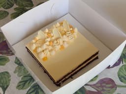 A beautiful combination of rich chocolate cake paired with yuzu curd and yuzu buttercream, finished with white chocolate decorations. The perfect indulgence to share with those you love. Serves 4-6. (Contains gelatine.)
