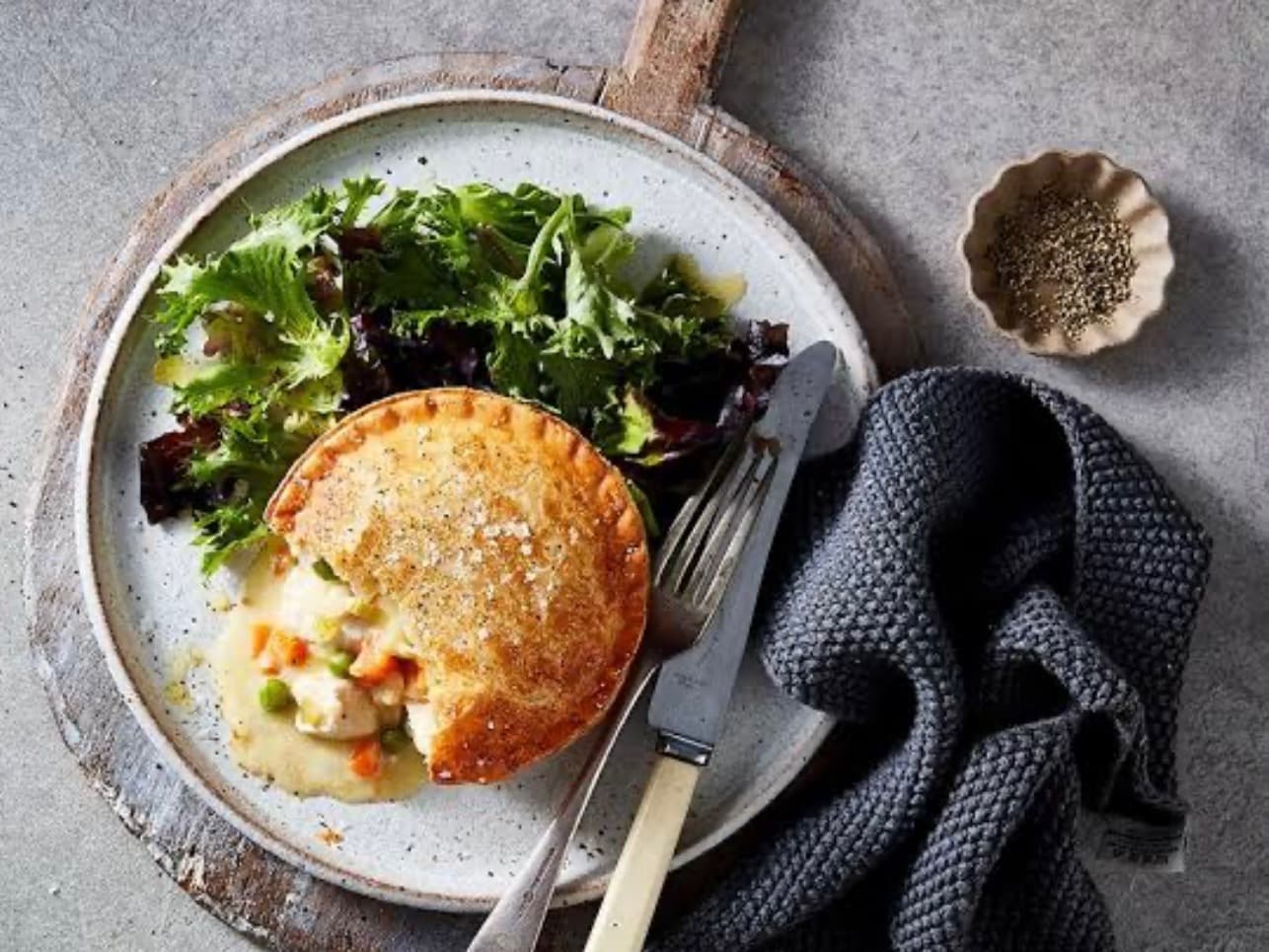 Our New Country Chicken & Veggie Pie is the perfect size for lunch or dinner. Serve it with some of creamy mash potato and seasonal vegetables for a complete meal.