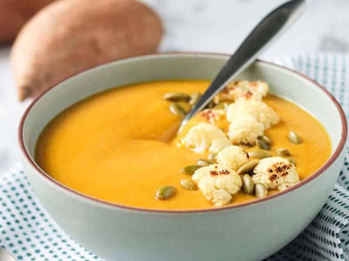 Roasted cauliflower, sweet potato and pears makes this soup creamy, slightly sweet and balanced in flavour. It's perfect for the chilly winter nights.