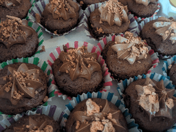 Does this need a description? No but here it is. A rich dark chocolate cupcake with chocolate frosting. We offer three sizes; Canape - a one bite morsel - ideal for finger food events & dessert tables. Small - 2-3 bites. Great for birthday parties. Large - 5-6 bites. An indulgent treat. Perfect for dessert. As always ~ Gluten Free