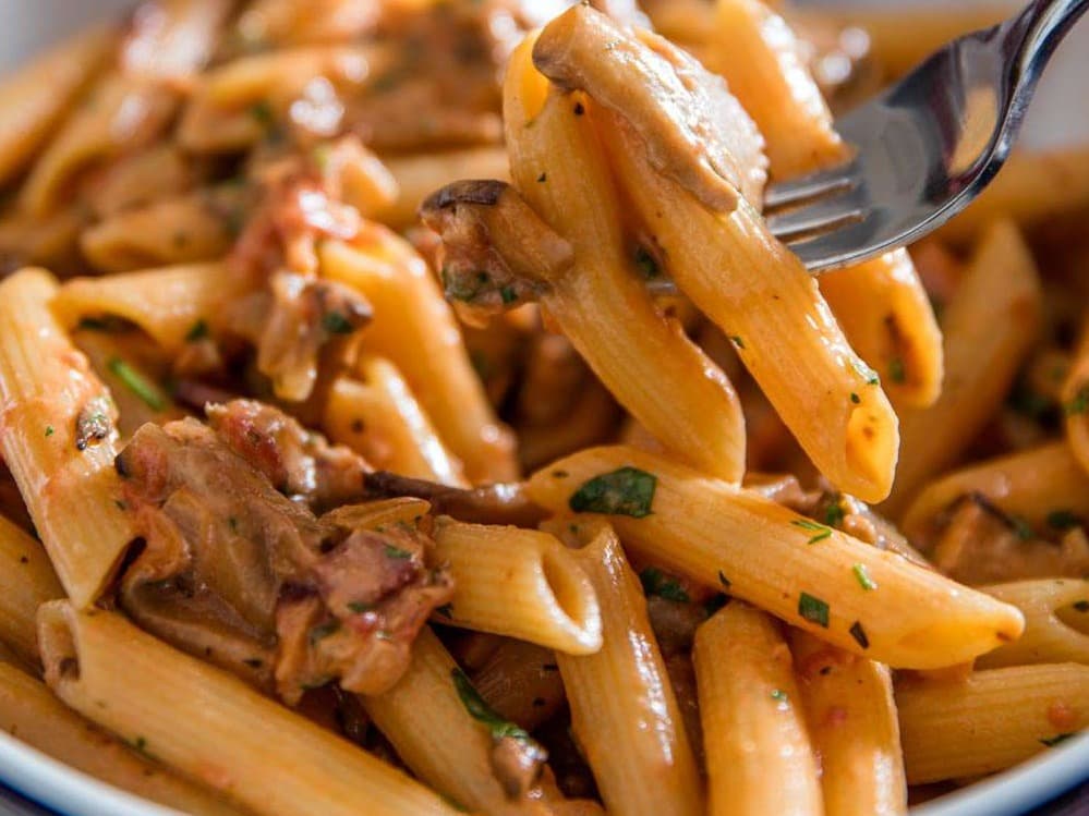"Boscaiola" comes from the word for a woodsman. Taste the sauce and you immediately get the earthy flavor of mushrooms, The sauce is rounded out by onions, a bit of white wine, maybe some garlic, a touch of tomato, and a rich splash of cream. As always ~ Gluten free