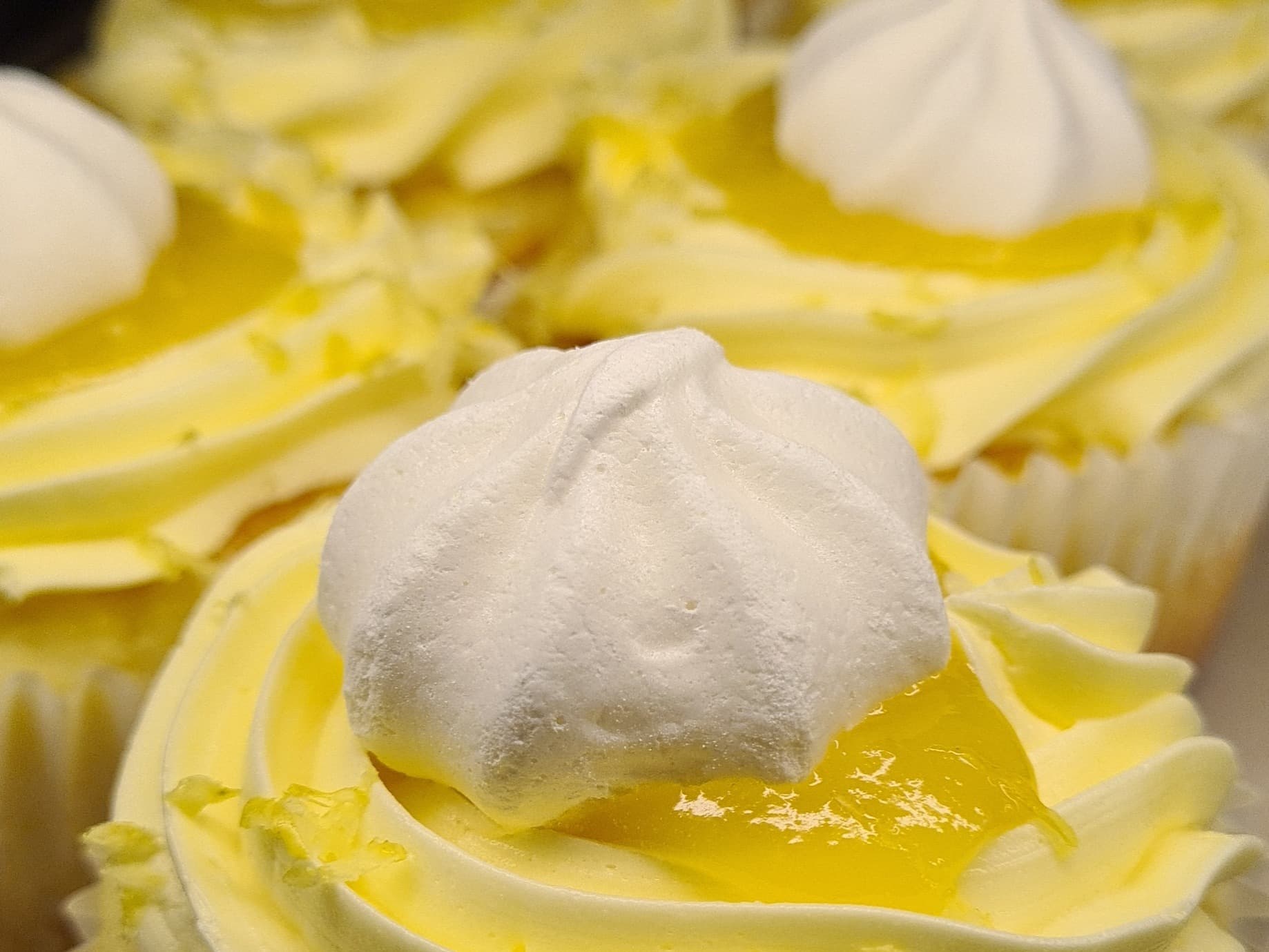 A two pack of large cupcakes -> These cupcakes are not for the faint of heart. A rich lemon curd sits atop a yoghurt cupcake. As always ~ Gluten Free