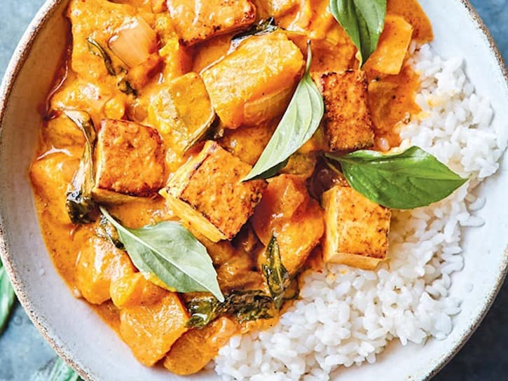 This gentle, fragrant curry originates from Thailand where it was popular among the royals and it's not hard to see why. Mild, nutty sauce with tofu, vegetables & finished with fresh coriander & lime juice. As always ~ Gluten Free