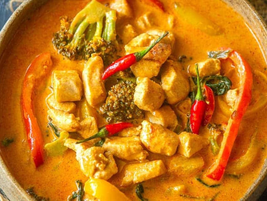 A Penang is a style of satay. We stay away from peanuts, using the nuttiness of tahini paste to give the richness. Lemongrass & lime give a light refreshing summer vibe to this curry. I love mine served over rice. As always ~ Gluten free
