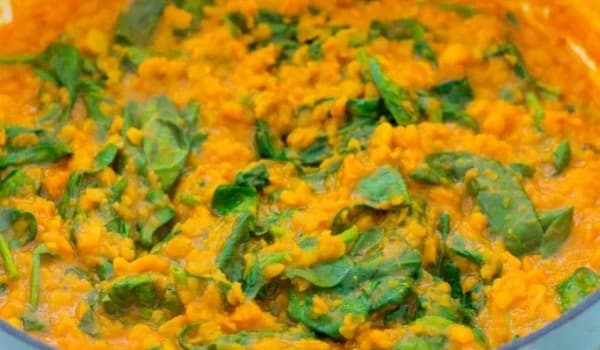 Thick and full of flavour, this Split Pea and Spinach Dhal is a delicious, healthy, meat-free curry – equally at home served on its own with brown rice, as a nutritious midweek meal, or as part of a larger Indian themed meal